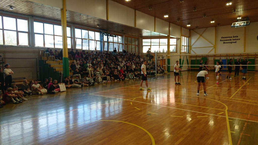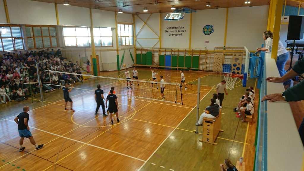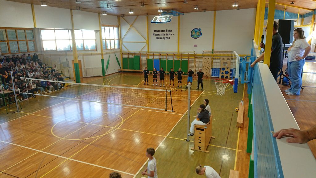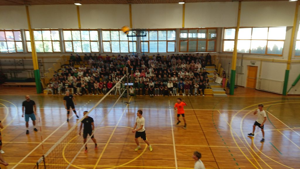Teden otroka smo na naši šoli letos obeležili z izjemnim športnim dogodkom. V sredo, 8. oktobra 2025, je bila v šolski telovadnici odigrana prva odbojkarska tekma med učenci 9. razredov in učitelji. Dogodek je bil organiziran v prid krepitvi medsebojnega spoštovanja, sodelovanja in zdrave tekmovalnosti, ki so ključne vrednote našega šolskega okolja.
