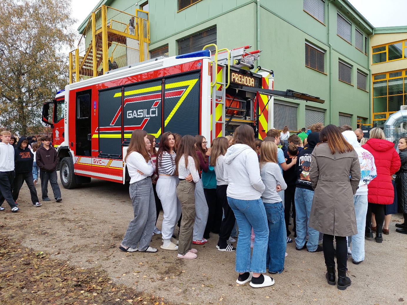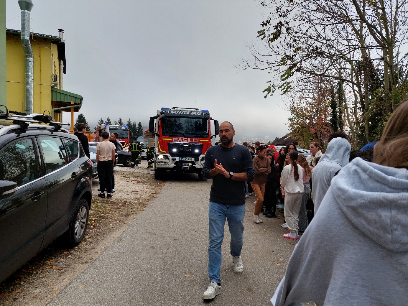 Mesec oktober je mesec požarne varnosti, zato smo imeli v sredo, 5. 11. 2025, nenapovedano evakuacijsko vajo. 1. uro smo vsi odšli k pouku, 15 minut pred koncem ure pa je zazvonil alarm za evakuacijo. Čim bolj mirno smo vstali iz šolskih klopi in se postavili v vrsto. Iz vsakega nadstropja (kjer smo imeli pouk) smo počasi odšli do najbližjega evakuacijskega izhoda in na zbirno mesto za šolo. Nekateri smo morali tudi po požarnih stopnicah. Počakati smo morali, da so gasilci potrdili, da je »požar pogašen in smo se vsi varno rešili«. Ko so nas prešteli in se je oglasila sirena za konec nevarnosti, smo se vrnili v razrede. Tako je potekala naša evakuacija ob mesecu požarne varnosti.