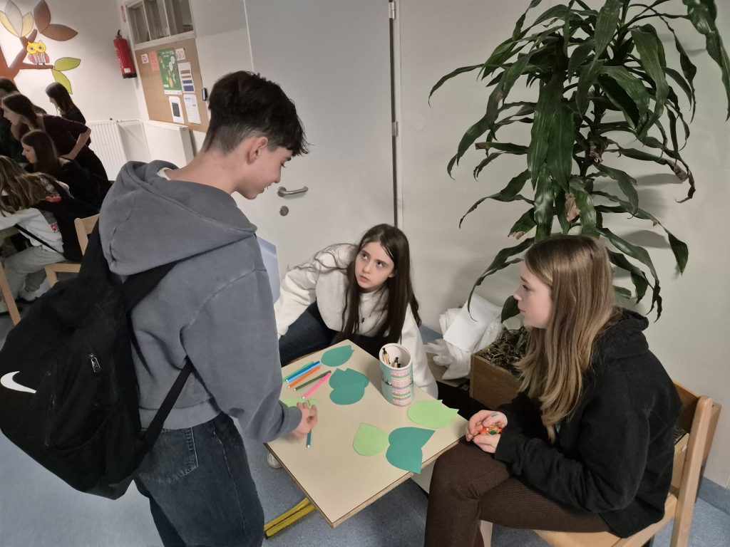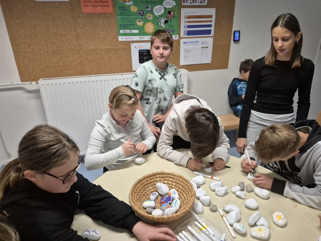 A zanje dan ni bil čisto brez skrbi. Njihove aktivnosti so se pričele že zjutraj s pripravo panojev in miz za delavnice, sledila je skrivalna akcija, saj so morale v prostorih šole skriti več kot 60 kamenčkov prijaznosti, ki so jih ustvarile v času priprav na ta dan. Učenci so jih vznemirjeni iskali in tisti, ki so jih našli, so jih z veseljem stiskali v dlaneh, pokazali ali pa podarili drugim. Nato so učenke v kratki objavi po šolskem radiu predstavile pomen prijaznosti in načine, kako jo lahko izkažemo drug drugemu. V 1. nadstropju so sledile ustvarjalne delavnice za učence 2. in 3. triade, kjer je zraslo prijazno drevo, bogato z listki lepih in prijaznih besed in misli, hkrati so nastajali pisani kamenčki prijaznosti, med katerimi ni bilo takšnega, ki bi širil nestrpnost ali negativizem. Učenke so obiskale tudi učence 1. triade. Skupaj so poslušali pravljico z naslovom Oprosti, se pogovarjali o prijaznih dejanjih, risali, peli, plesali in ob koncu skupnega srečanja napihnili svoj prijazen balonček ter ga okrasili s toplo besedo ali sliko.