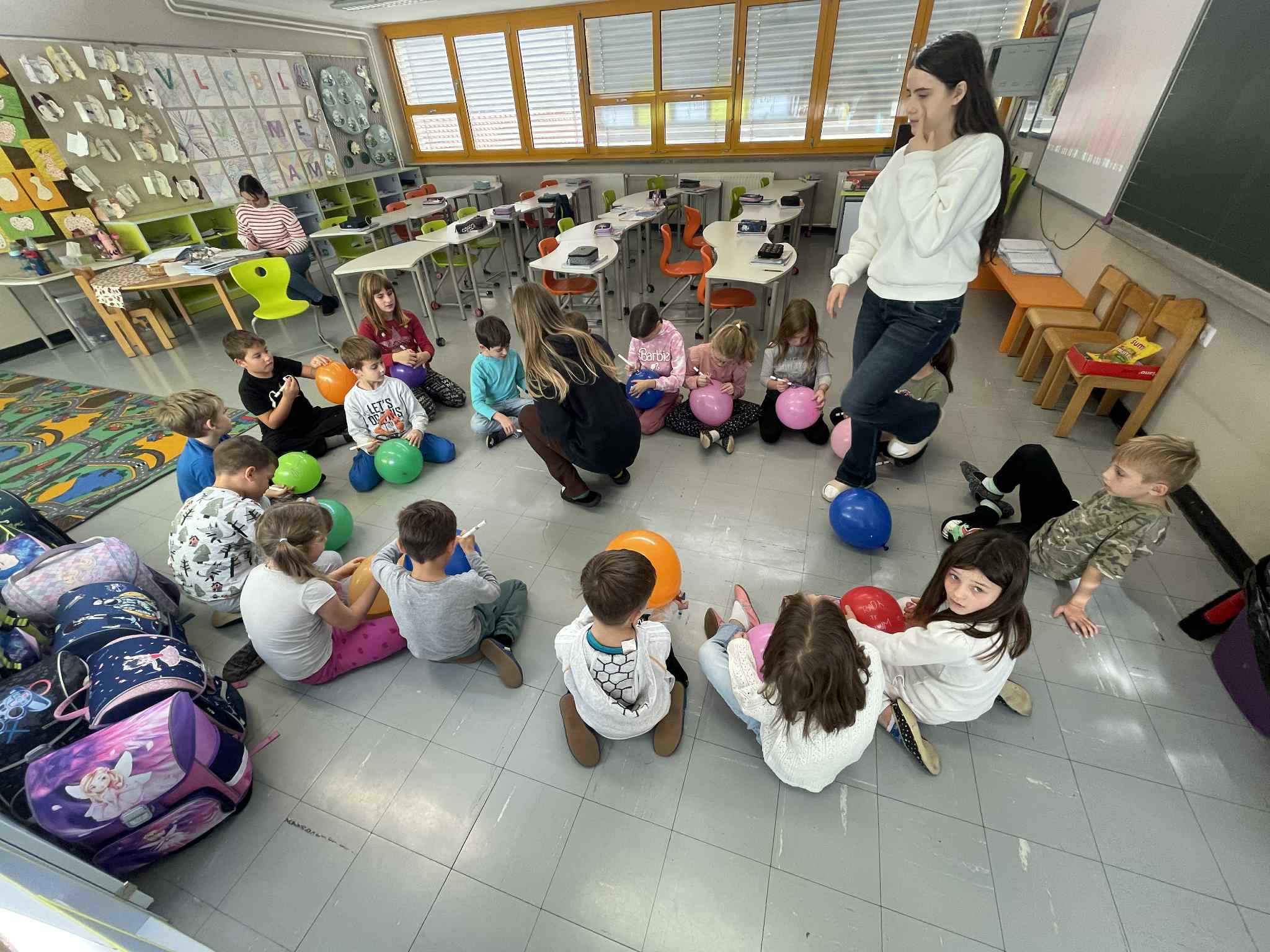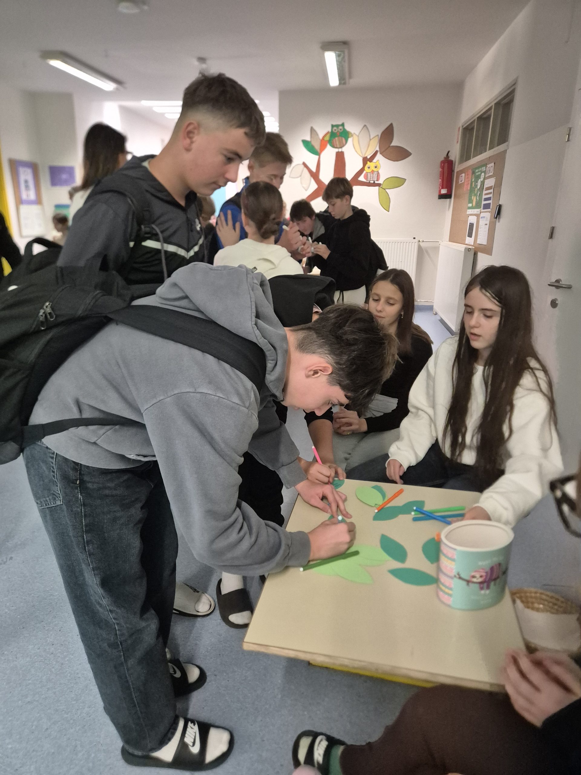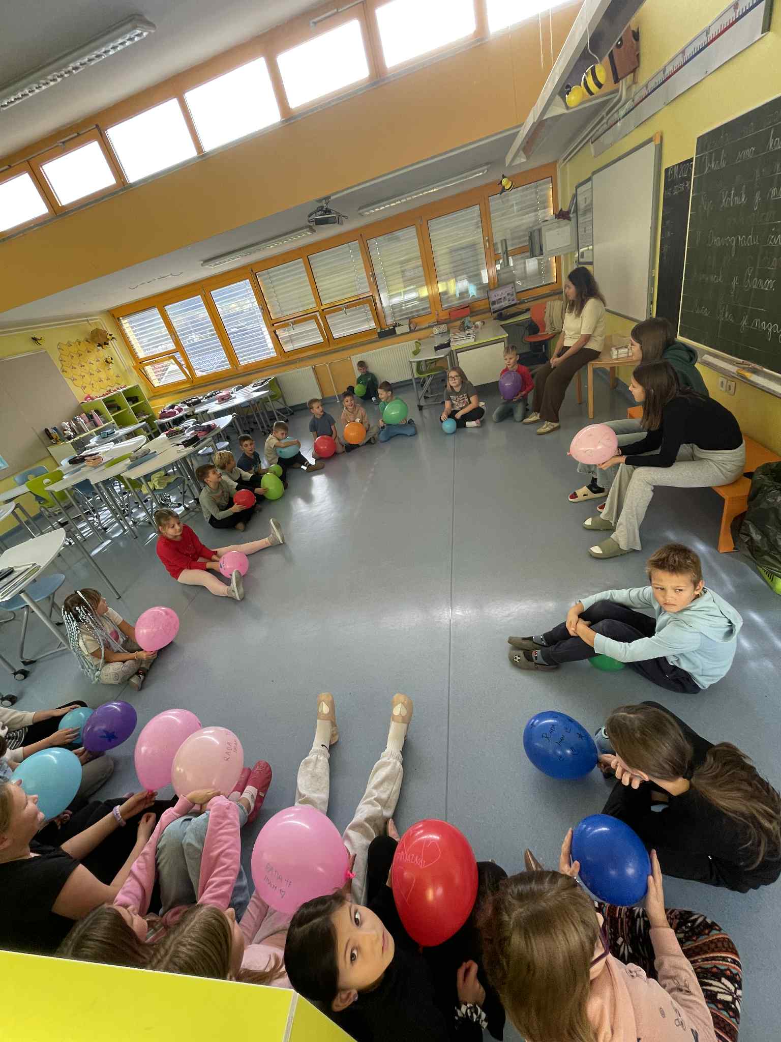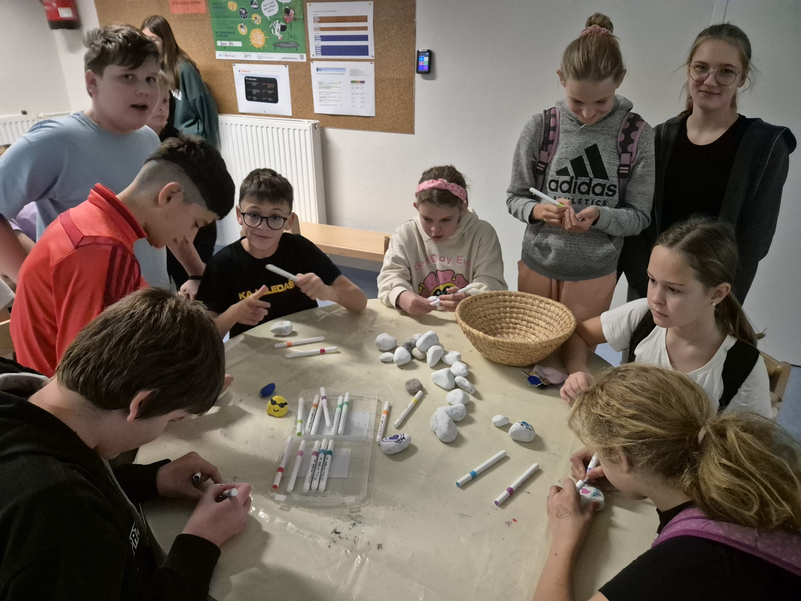 A zanje dan ni bil čisto brez skrbi. Njihove aktivnosti so se pričele že zjutraj s pripravo panojev in miz za delavnice, sledila je skrivalna akcija, saj so morale v prostorih šole skriti več kot 60 kamenčkov prijaznosti, ki so jih ustvarile v času priprav na ta dan. Učenci so jih vznemirjeni iskali in tisti, ki so jih našli, so jih z veseljem stiskali v dlaneh, pokazali ali pa podarili drugim. Nato so učenke v kratki objavi po šolskem radiu predstavile pomen prijaznosti in načine, kako jo lahko izkažemo drug drugemu. V 1. nadstropju so sledile ustvarjalne delavnice za učence 2. in 3. triade, kjer je zraslo prijazno drevo, bogato z listki lepih in prijaznih besed in misli, hkrati so nastajali pisani kamenčki prijaznosti, med katerimi ni bilo takšnega, ki bi širil nestrpnost ali negativizem. Učenke so obiskale tudi učence 1. triade. Skupaj so poslušali pravljico z naslovom Oprosti, se pogovarjali o prijaznih dejanjih, risali, peli, plesali in ob koncu skupnega srečanja napihnili svoj prijazen balonček ter ga okrasili s toplo besedo ali sliko.