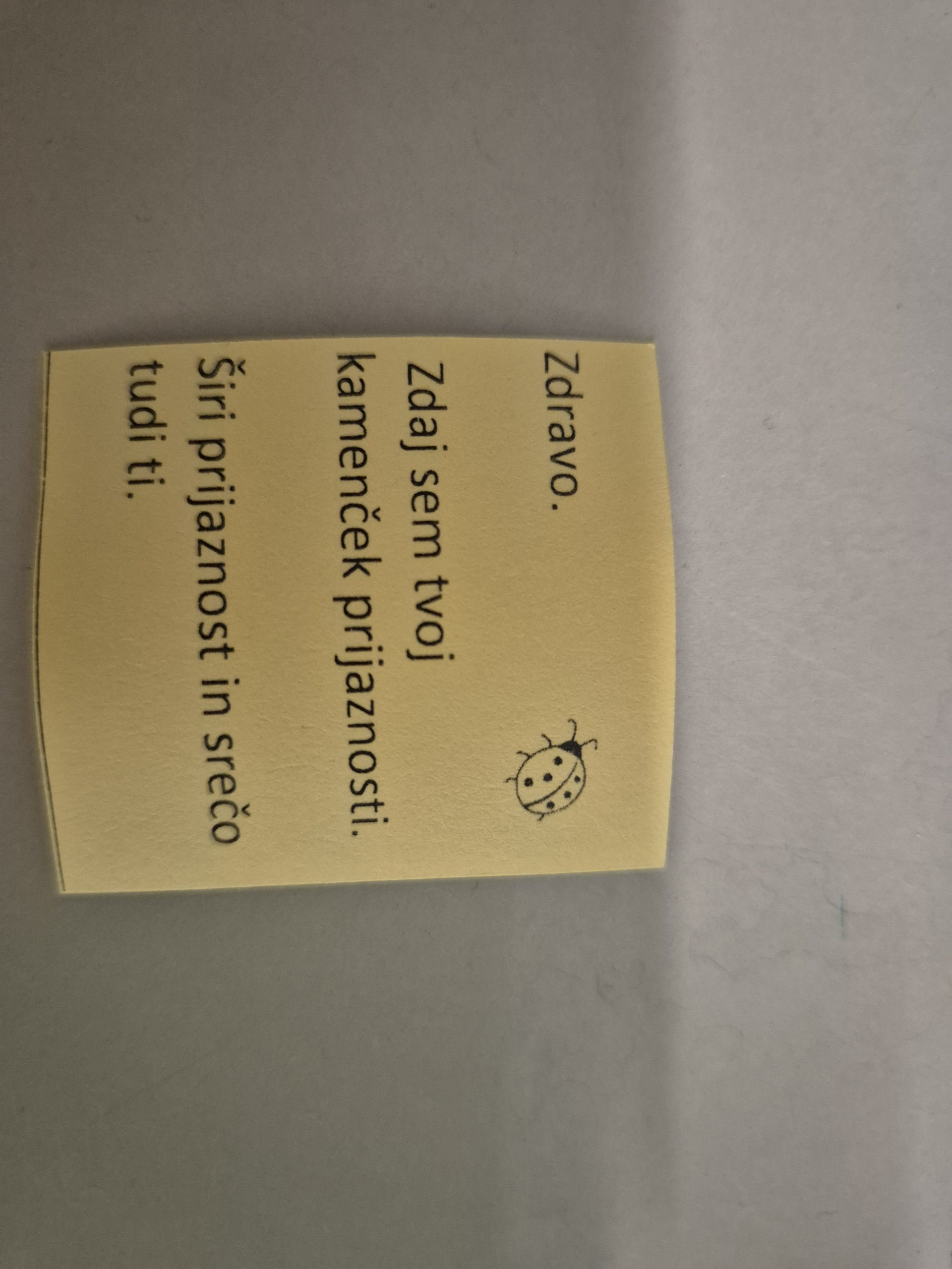 Nekaj utrinkov z mednarodnega dneva prijaznosti na šoli Dravograd ter nekaj najdenih kamenčkov oz prijaznih srečnežev, ki so ji našli, in z nami delili fotografijo. Hvala.
