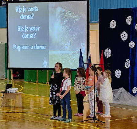 Domovina ni le zemljepisni pojem ali datum v učbeniku, temveč občutek pripadnosti, varnosti in povezanosti. Otroški pogledi so skozi preprosta vprašanja o vetru, cesti, domu in željah razkrivali globoke resnice o iskanju svojega prostora pod nebom. S pesmimi in recitacijami so učenci prikazali lepoto slovenske pokrajine, raznolikost narave ter toplino ljudi, ki v njej živimo.