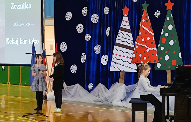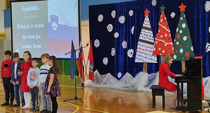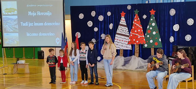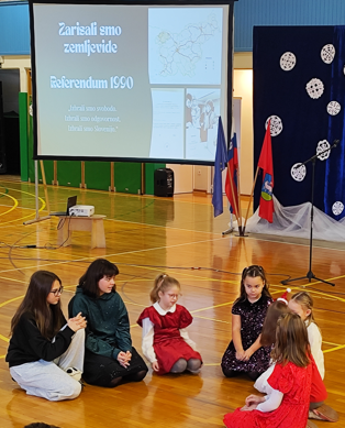 Ob izteku koledarskega leta in bližajočih se praznikih je na naši šoli potekala slovesna prireditev ob dnevu samostojnosti in enotnosti, ki je združila zgodovinski spomin, otroško domišljijo in praznično decembrsko toplino. Učenci so skozi poezijo, glasbo, ples in igrane prizore razmišljali o tem, kaj je domovina, kaj pomeni biti doma in zakaj je odločitev za samostojno Slovenijo še danes tako pomembna.