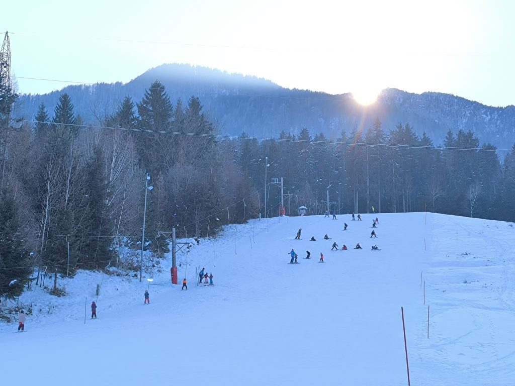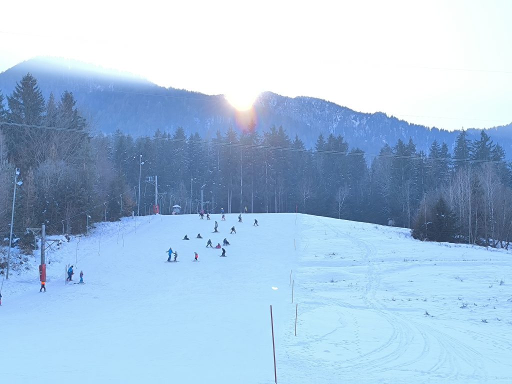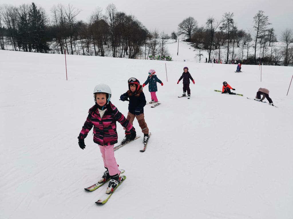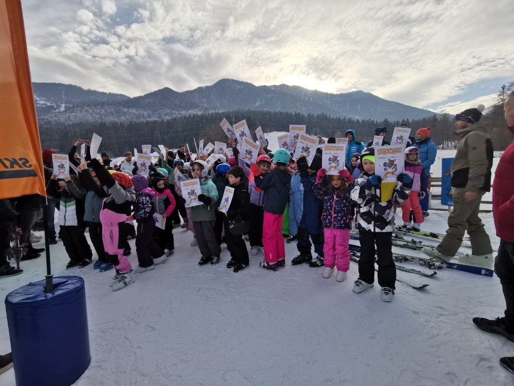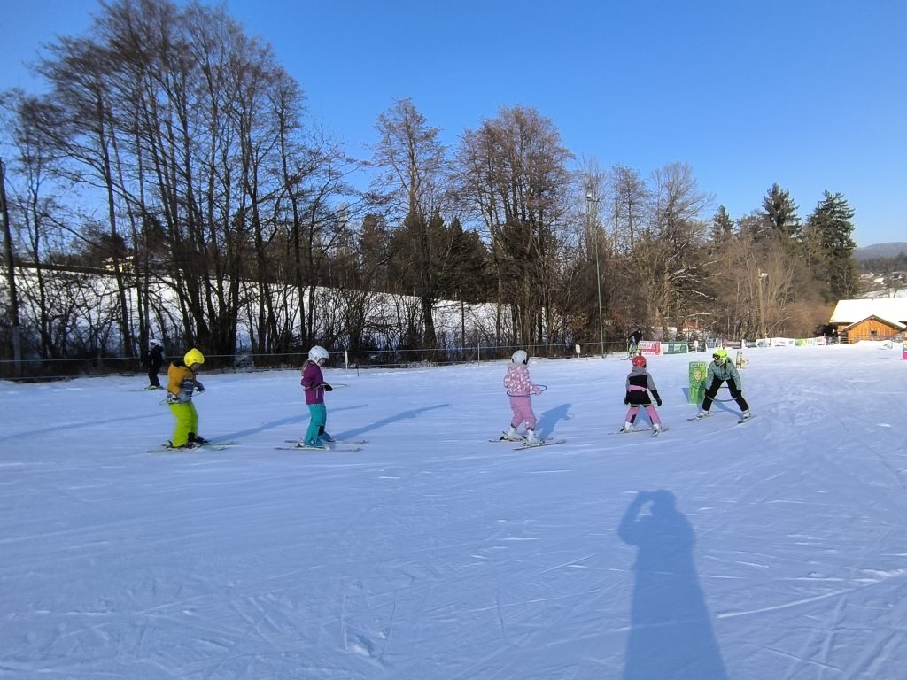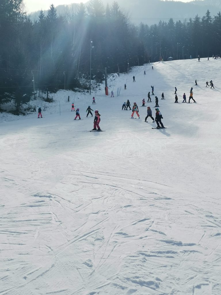 Za nami so res lepi, malce naporni smučarski dnevi. Prijavljeni učenci 1. triade smo se v tednu od 19. do 23. januarja udeležili smučarskega tečaja na smučišču Rimski vrelec v Kotljah. Pred nami je bila zahtevna naloga, saj smo morali obleči vsa smučarska oblačila po pravilnem vrstne redu, kar ni mačji kašelj. Na srečo so bile z nami učiteljice, ki so nam priskočile na pomoč, nas usmerjale in tudi pomagale, predvsem pri obuvanju pancerjev, smučarskih čevljev. Dali smo še čelado na glavo in rokavice na roke in že smo bili pripravljeni. Pred šolo nas je čakal avtobus, s katerim smo se odpeljali proti Kotljam. Na smučišču so nas razdelili v skupine. Najboljši smučarji so že prvi dan šli na »veliko vlečnico«, ostali pa smo začeli na položnejši progi.
