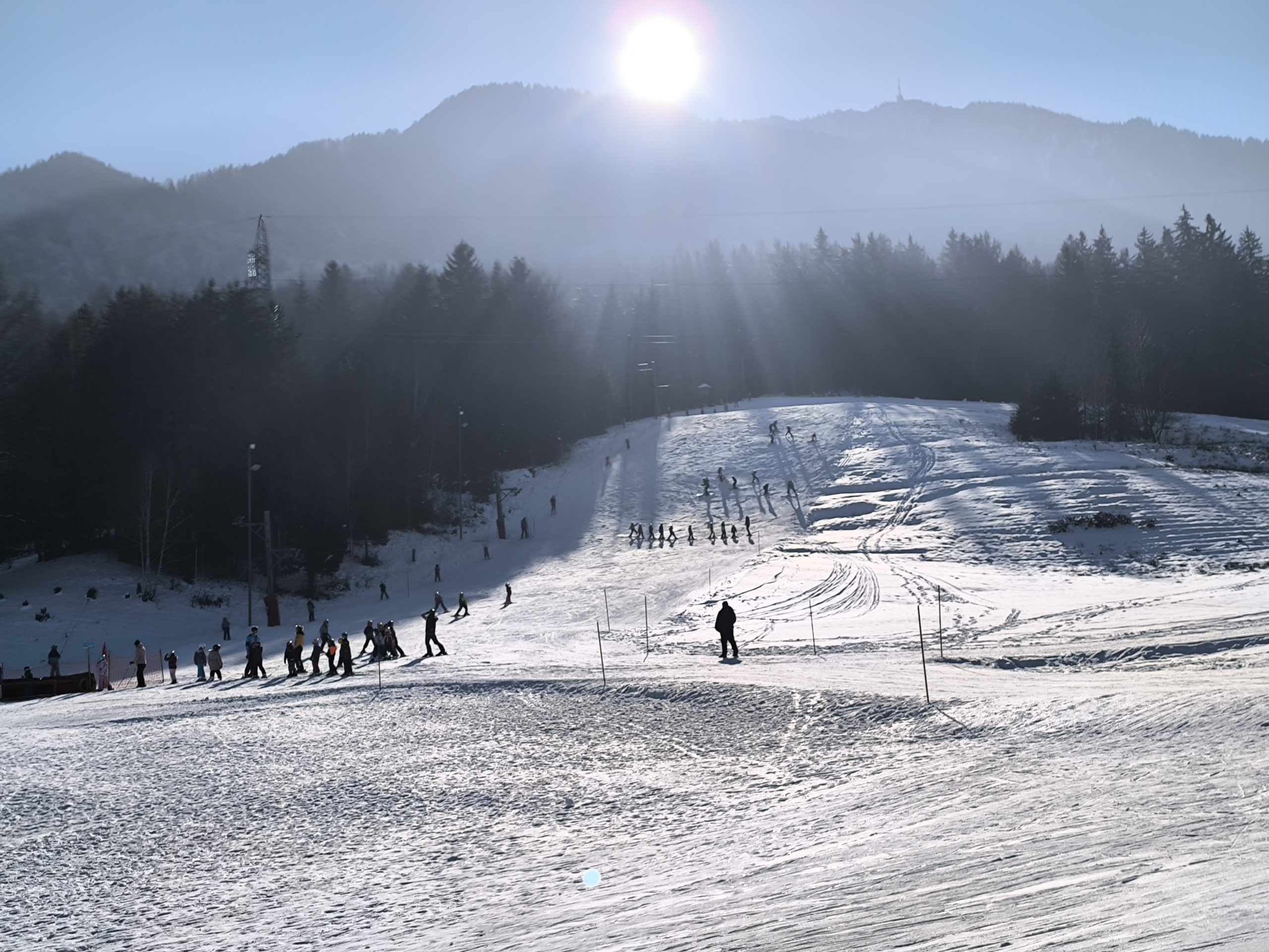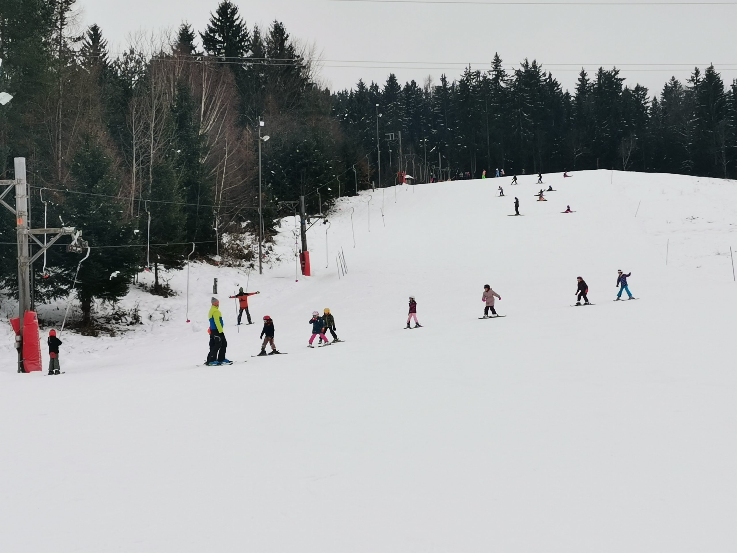 Za nami so res lepi, malce naporni smučarski dnevi. Prijavljeni učenci 1. triade smo se v tednu od 19. do 23. januarja udeležili smučarskega tečaja na smučišču Rimski vrelec v Kotljah. Pred nami je bila zahtevna naloga, saj smo morali obleči vsa smučarska oblačila po pravilnem vrstne redu, kar ni mačji kašelj. Na srečo so bile z nami učiteljice, ki so nam priskočile na pomoč, nas usmerjale in tudi pomagale, predvsem pri obuvanju pancerjev, smučarskih čevljev. Dali smo še čelado na glavo in rokavice na roke in že smo bili pripravljeni. Pred šolo nas je čakal avtobus, s katerim smo se odpeljali proti Kotljam. Na smučišču so nas razdelili v skupine. Najboljši smučarji so že prvi dan šli na »veliko vlečnico«, ostali pa smo začeli na položnejši progi.