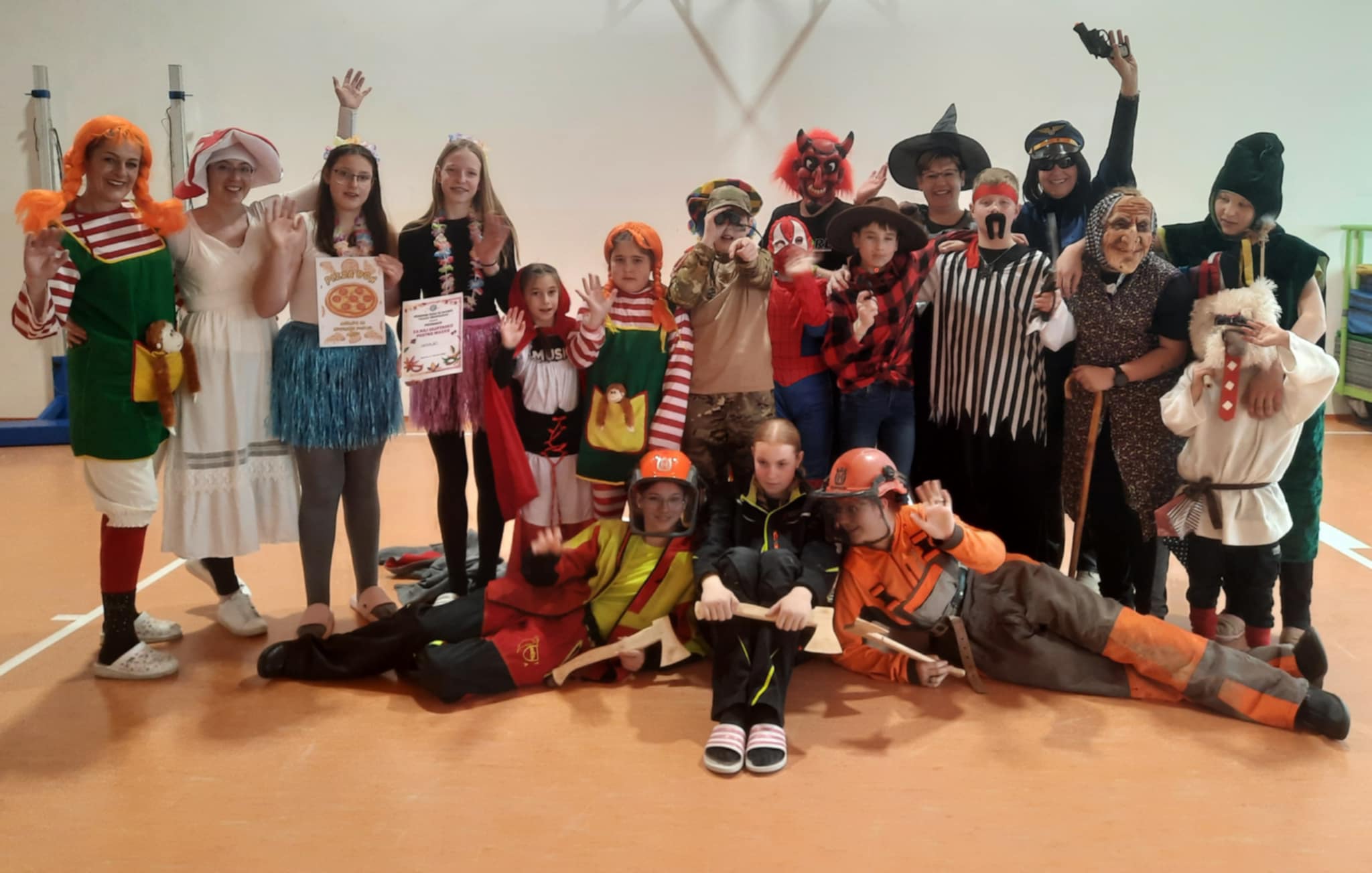 Po hodnikih so se sprehajali kavboj, pogumna Pika Nogavička, zabaven klovn, prijazna Rdeča kapica, dve nasmejani havajski plesalki, pogumni vojak, tri gozdarke, bica, strašni pirat, navihani hudič, prav posebna steklenica piva in celo naš mali kurent, ki je s svojim zvonjenjem poskrbel za pravo pustno vzdušje.