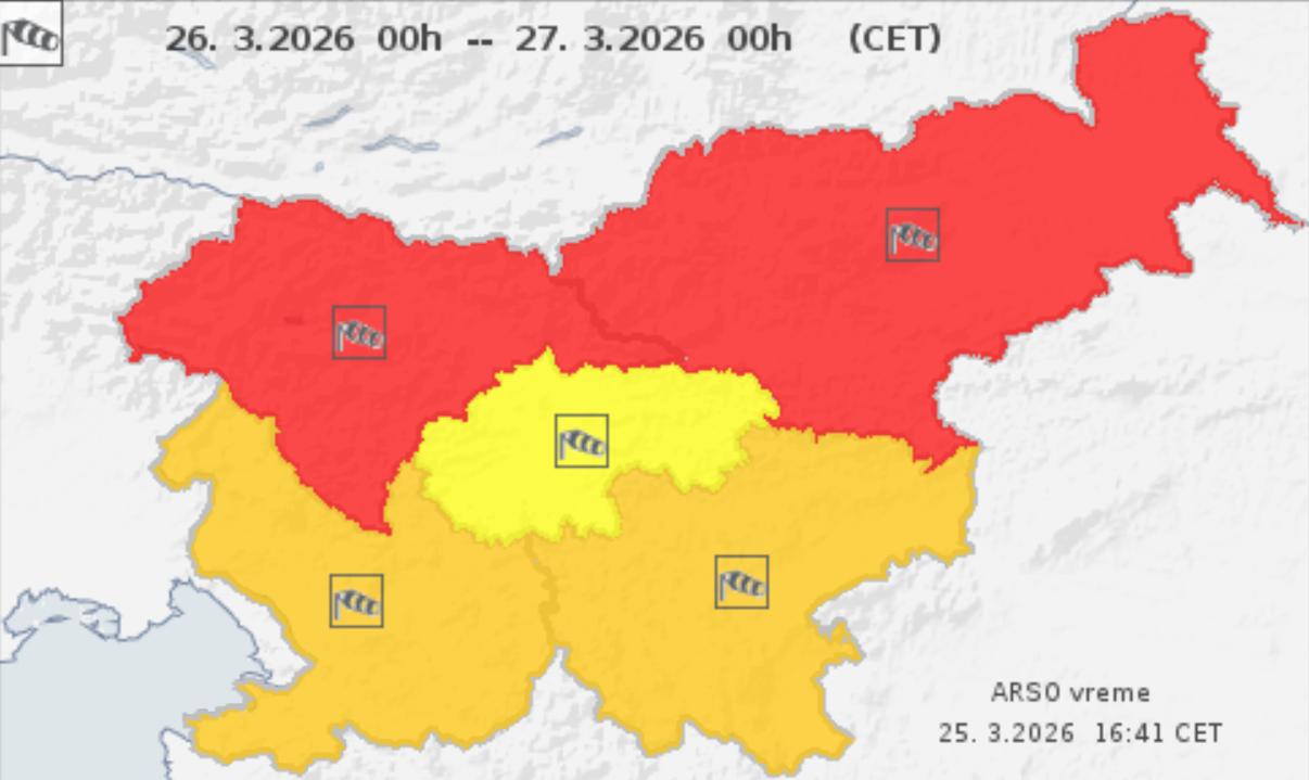 Agencija RS za okolje (ARSO) je za severni del Slovenije izdala rdeče vremensko opozorilo, saj se obeta izrazit vremenski preobrat z zelo močnim vetrom, možnim sneženjem in nevarnimi razmerami v naravi.