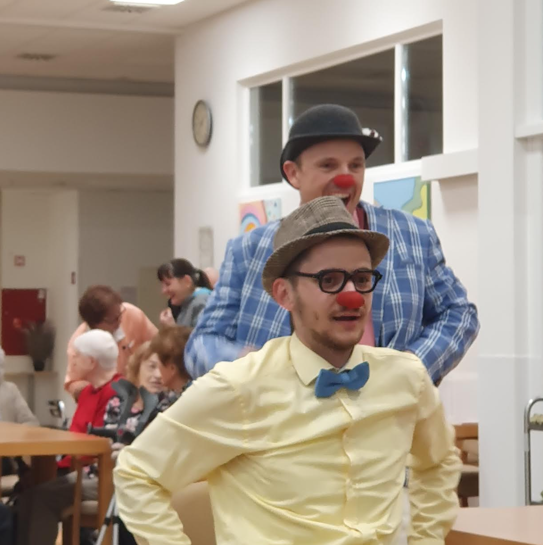 Za piko na i so ob koncu našega druženja poskrbeli še Rdeči noski, ki so stanovalce presenetili z obiskom. S svojo razigranostjo, humorjem in pozitivno energijo so pričarali nasmehe na obraze vseh prisotnih ter v prostor prinesli pravo pomladno vzdušje. Dogodek nam bo vsem ostal v lepem spominu.